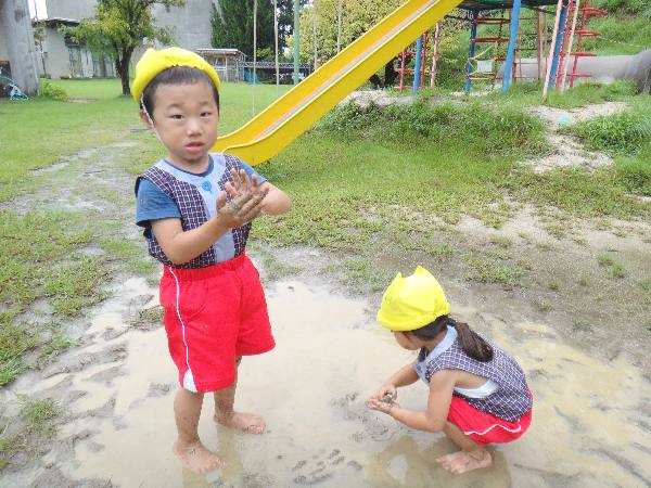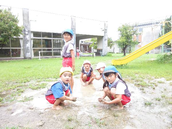 午後からは雨も上がり、アクティブタイムは思いっきり園庭で遊びました!雨上がりの園庭にはたくさんの水たまり✨子どもたちにとっては最高の自然からの贈り物です🎵