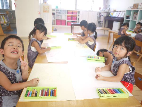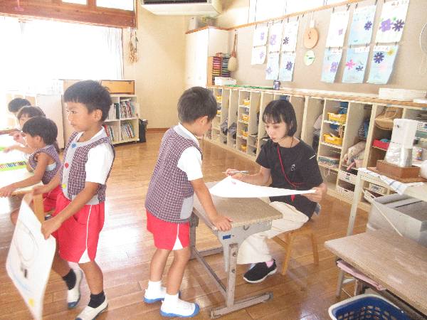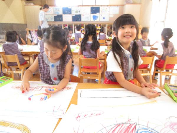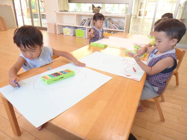 代休明けの今日も爽やかないい天気になりましたね🌞日曜日に開催された運動会を思い出しながら、各クラスのびのびと大きな画用紙を使って描画を楽しみました🎵