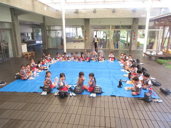 年中クラスは、もくもく広場でピクニック弁当🍱みんなのお顔が見えて嬉しいね🥰