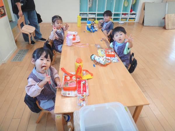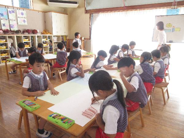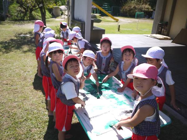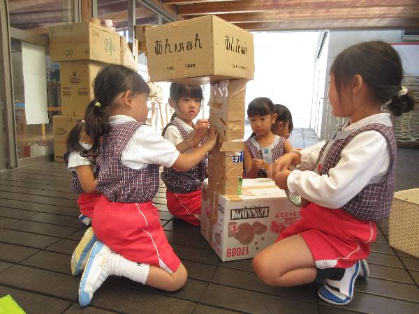 日中の日差しは暑く感じるほど気持ちの良いお天気でした🌞年少クラスは絵の具の活動✨年中クラスは箱の組み立て🎵友だちと協力する楽しさや、形や大きさを見ながら目的の形を創り上げる面白さを感じました🥰