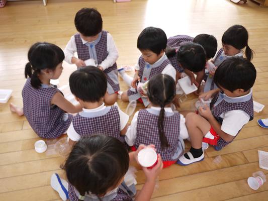 明日で生活素材集めは終了です。たくさん持ってきていただいているカップやトレイを色や形で分類することも学びが多い活動です💗