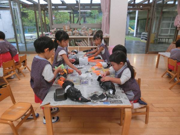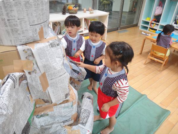 今日は久しぶりの雨でひんやりしましたね☔クリエイティブタイムでは様々な素材を使い、制作意欲が膨らむ子どもたち🥰何日もかけて完成したときの喜びや友だちと協力して作る楽しさなどを感じています✨