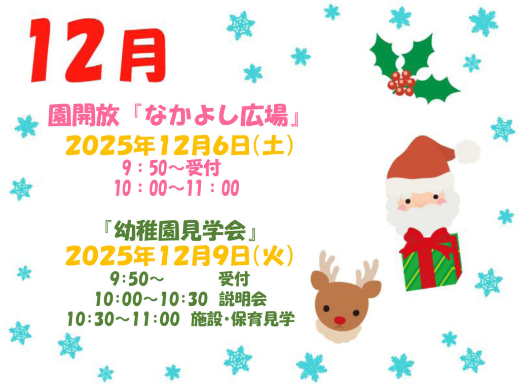🌟毎月実施の園開放『なかよし広場』でも、幼稚園の紹介や入園やプレキッズについて等の相談も承っています。ご家族皆さまで、お気軽にお越しください。