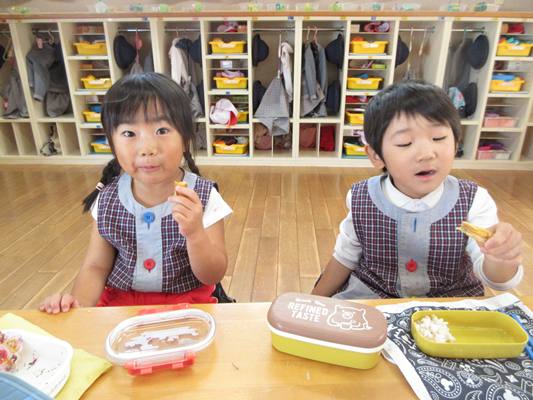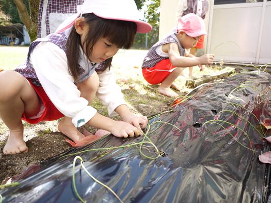 お弁当の時間には先日収穫したお芋で作った干し芋をいただきました🌟園庭の畑には、春の収穫を楽しみに玉ねぎの苗も植えました😊