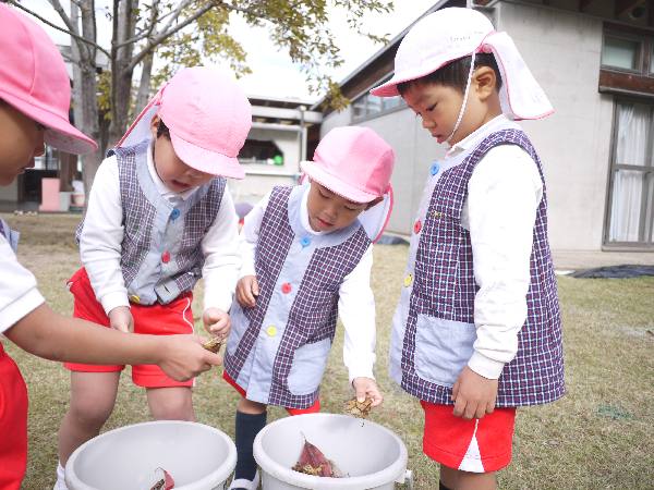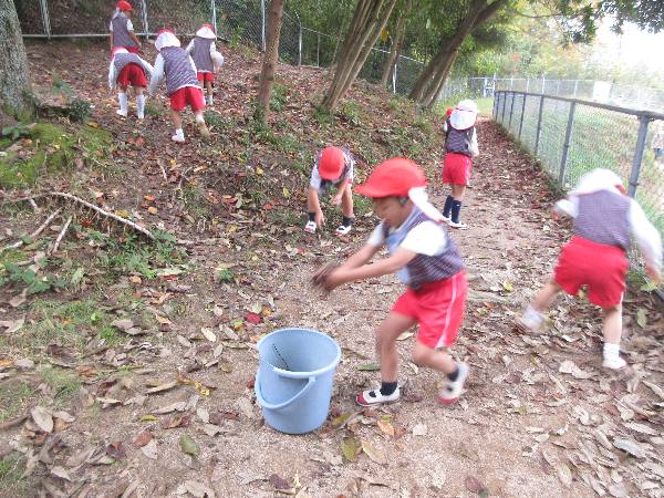 こちらは、金曜日に予定しているたき火を楽しみに💗落ち葉をせっせと集める年少・年中クラスでした💪