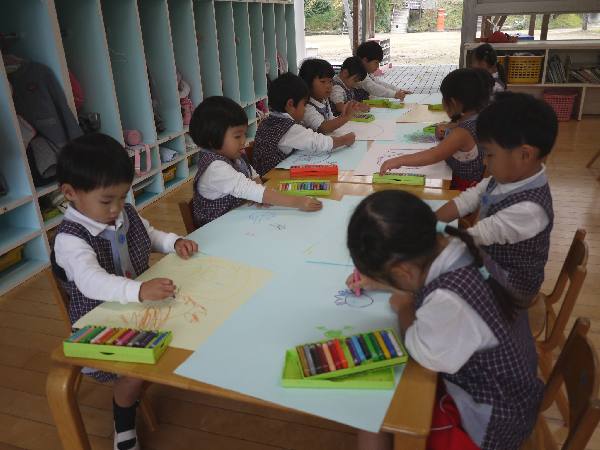 幼稚園のお山にあるイチョウの葉が、寒さとともに少しずつ黄金色になってきました🌞紅葉の季節ですね😊
