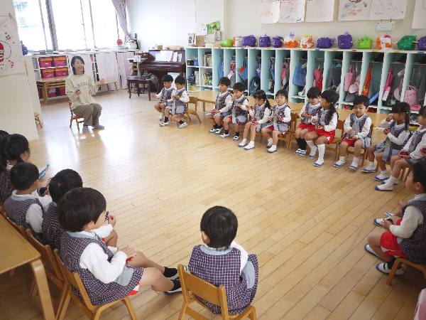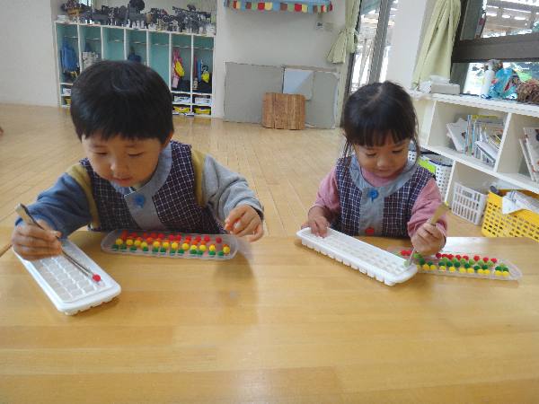 モンテッソーリの教具でもあるポンポンボールを熱中して取り組んでいた満3歳児クラス😊年少クラスはカスタネットでリズム遊び🎵