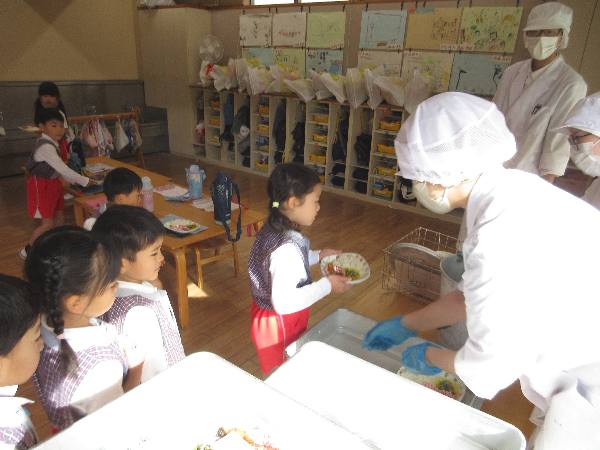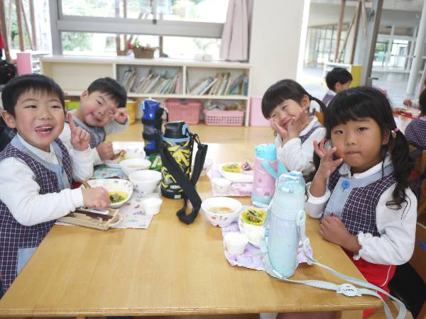 今日は短大給食の日🍴年長クラスは自分で配膳します🍚汁椀もそ~っと💗優しい気持ちで運び、食材や調理にか関わってくださった人へ感謝の気持ちを込めていただきました🥰
