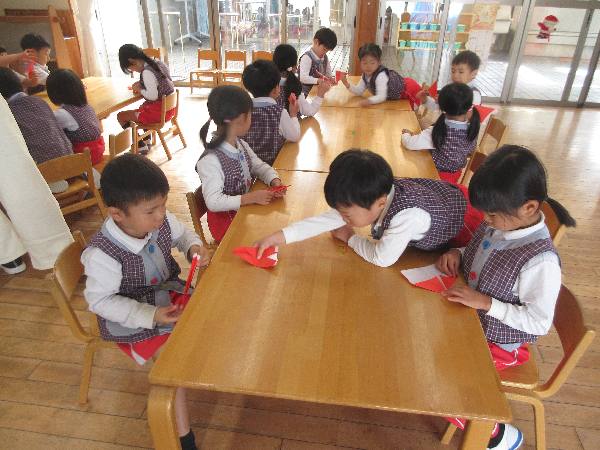 年中クラスはサンタクロースを折りました🎅