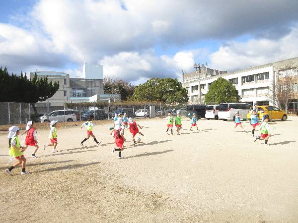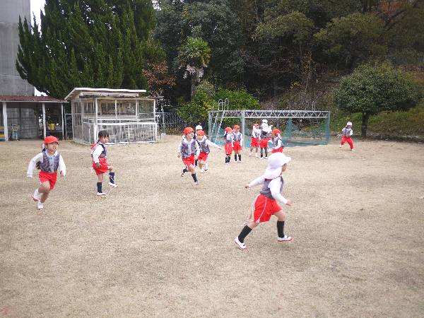 年長クラスはサッカー⚽風は冷たく感じましたが、グランドを駆ける子どもたちはぽっかぽかの様子でした🌞