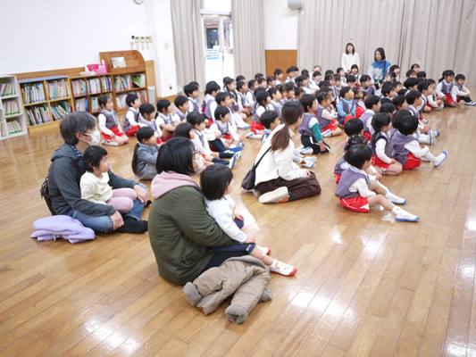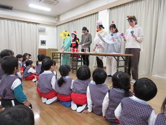 その後は、プレキッズさんとホールに集まって、ベルパーティー🔔変装した先生たちが素適な音色を奏でます🎵クリスマスの雰囲気を感じながら、聞き入っていた子どもたちでした💗
