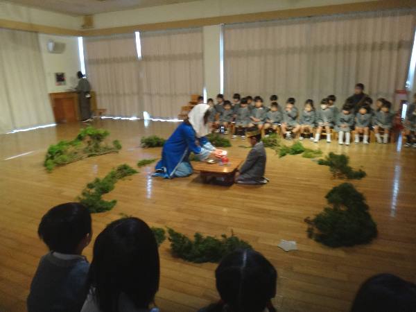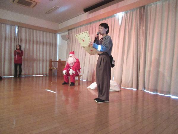 厳かで温かい雰囲気の中、クリスマスの由来を聞き、みんなの温かい気持ち💖や人を思いやる気持ち💖…ステキな気持ちがいっぱいのクリスマス会で、心も温か💗そうしていると、鈴の音と共にサンタさんのお友だちが登場!!サンタさんはお昼はそりが飛べないので、お友だちにお手紙やみんなへのプレゼントを託してくれていました!