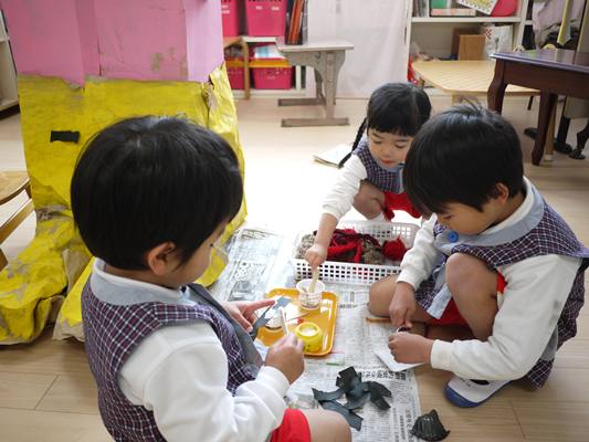 年少クラスはクラスの鬼をみんなで制作!個性あふれる素適な鬼👹が仕上がってます!!