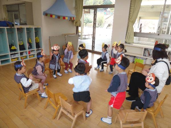 満3歳児クラスは動物のお面を自分で選んで🐵お引越しゲームを楽しみました😸