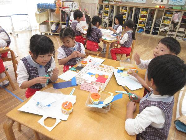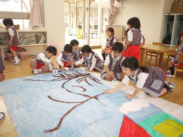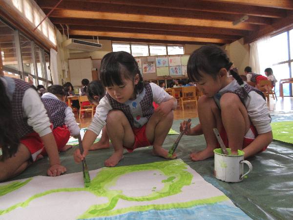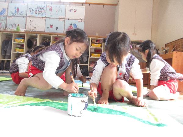 年少・年中クラスは発表会に登場する背景作りを、友だちと協力しながら進めていましたよ💪