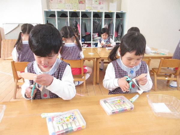 教室では雛飾り🎎や、1年間の作品を持ち帰る表紙😊👐の制作をしました🌼