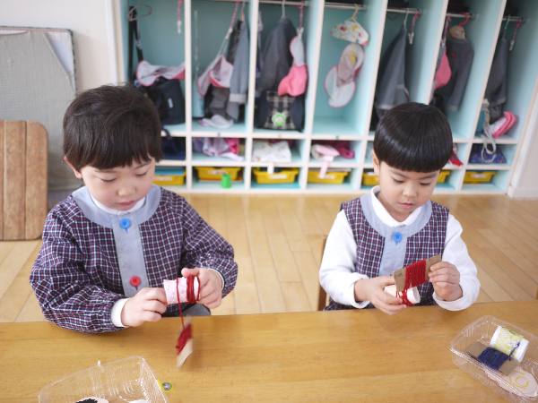 年少クラスは毛糸を使って巻き巻き・・・何ができるかな??