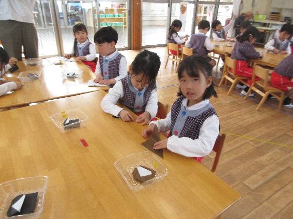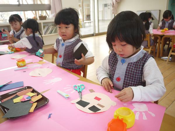 満3歳クラスと年中クラスは、もうすぐやってくる桃の節句にむけて🌸おひなさまを制作中です🎎