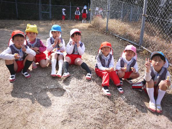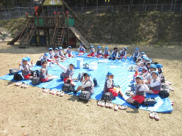 年長クラスは、幼稚園最後のお弁当をお山の上で食べました🍱