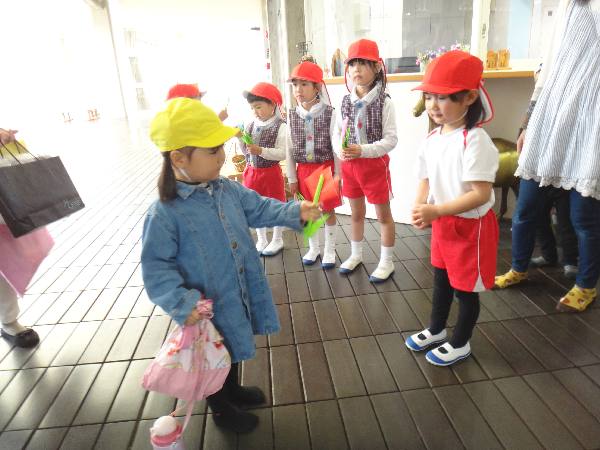 さくら組さんが心を込めて作ったチューリップのプレゼント🌷次に会うときは、ばら組さんとすみれ組さんですね💗