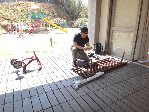 理事長先生が幼稚園の備品や玩具を修理し、物を大切にする姿も見せてくださっています✨