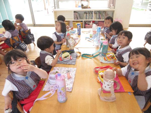 年少クラスは今日からお弁当が始まりました🍱みんなで食べるとうれしいね💗