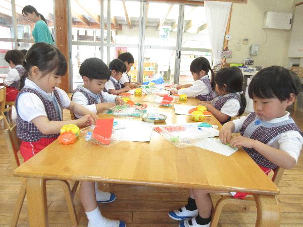 のりやマーカーを使った制作を楽しみました😊年長クラスは、園庭で『みんなのために💗』よもぎ摘みをしました🌼
