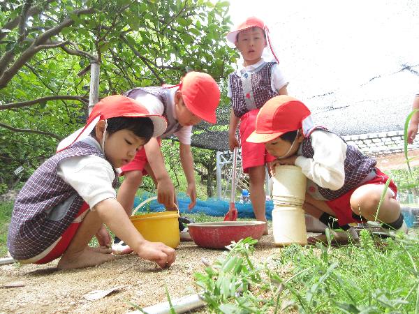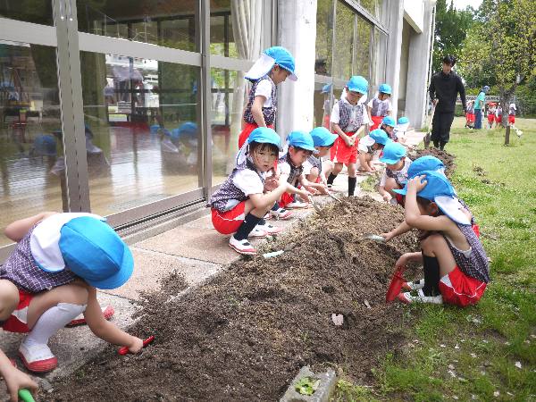 年長クラスは昨日に引き続き畑作り🌱夏野菜を育てるだけでなく土作りから行うことで責任感や達成感もアップ⤴⤴みんなの優しさでふわふわの畑が出来つつあります💗