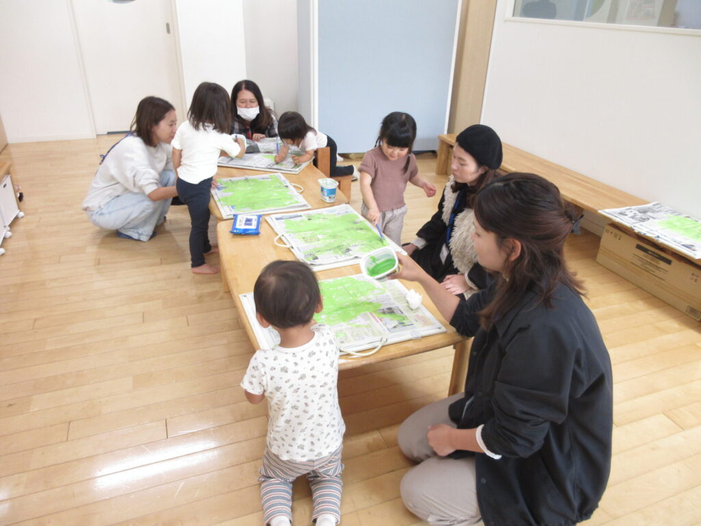 プレルームに入って、絵の具遊びを楽しみました。筆の感触を感じながら、肩からしっかり動かして伸び伸び描く💚描く姿からも発達の違いが見えます👀心を開放しながら大きな関節をしっかり使う経験も意識して取り入れてあげたいですね💚