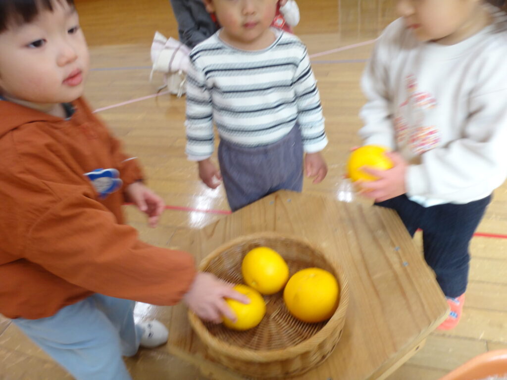 プレキッズ 寒い中、元気に遊びに来てくれたプレキッズさん🎵幼稚園で収穫した八朔を味わったり、ビニール袋でタコを作ったりして遊びましたね! Date 2026年1月21日 Expired! Time 9:10 AM - 10:40 AM クラス 2歳児クラス 3歳児クラス